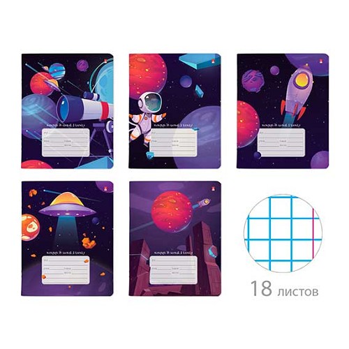 Тетрадь 18л. (клетка) АЛЬТ "Космическое путешествие" 7-18-1116/1 5в.