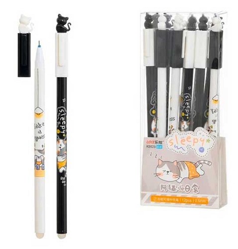 Ручка гелевая "Пиши-Стирай" МС Basir "Котёнок" K9929 синяя,0.5мм,бел.+чёрн.корп.