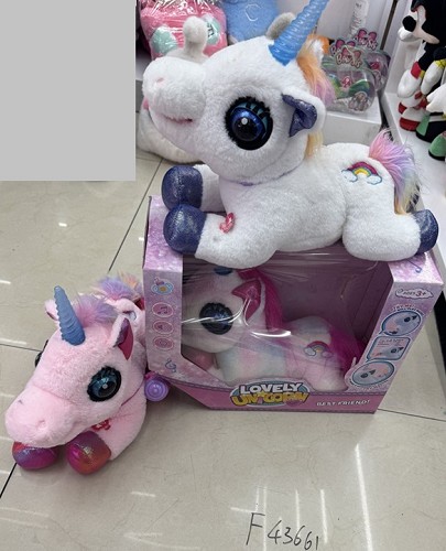 МС.Механич.Единорог 26см 4цв с поводком,ходит, 1песня+иго-го в/к F43662