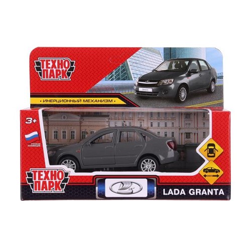 Машина Технопарк металл. Lada Granta серый (11,5см) инерц,откр.дв,в/к GRANTA-12-