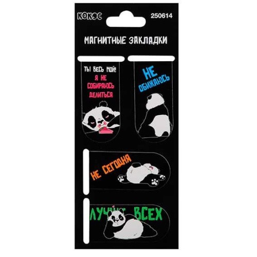 Закладки магнитные КОКОС "Панда" (4шт) 250614 картон,25*55мм 250614