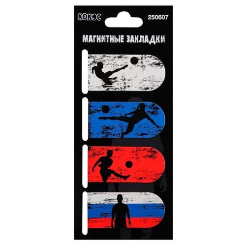 Закладки магнитные КОКОС "Футбол патриот" (4шт) 250607 картон,25*55мм 250607