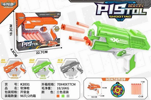 Игрушка Пистолет пули поролон K2031 в/к (22,7*4,8*18,2)
