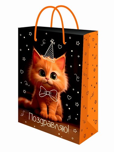 Пакет подарочный с глянц.лам. (26,4х32,7x8см) (L) Кот ППК-7840