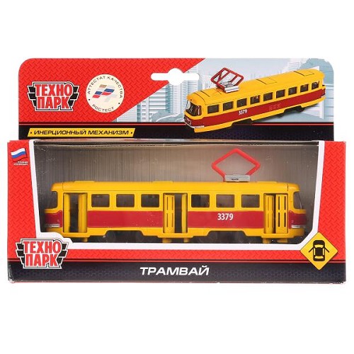 Машина Технопарк металл. Трамвай (16,5см) инерц,откр.дв,в/к SB-16-66WB