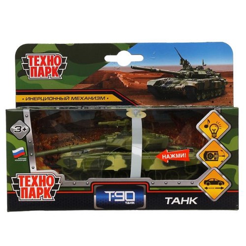 Машина Технопарк металл. Танк Т-90 (12см) свет,звук,подвиж.дет,в/к X600-H09263-R