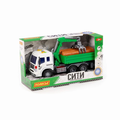 Автомобиль Профи лесовоз зелёный (инерц,свет,звук) в/к 96180 (Полесье)