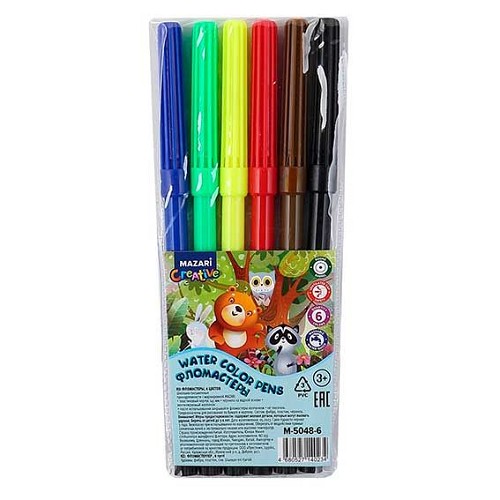 Фломастеры 6цв. MAZARI M-5048- 6 вент.колп.,круг.корп.,ПВХ,е/подвес