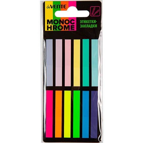 Набор самокл. этикеток-закладок deVENTE "MonoChrome" 2011318 135*5мм,8цв.*20л.,п