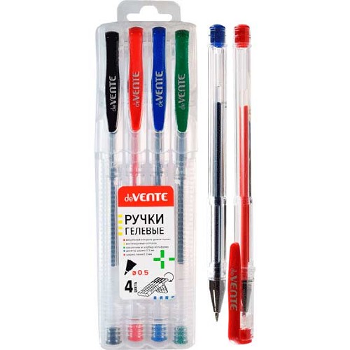 Набор гел. ручек 4цв. deVENTE 5051030 прозр.корп,0,5мм,пластик/к,е/подвес