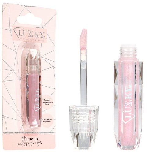 Lukky Diamond Глазурь для губ с ароматом клубники,цвет розовый,2,5 мл
