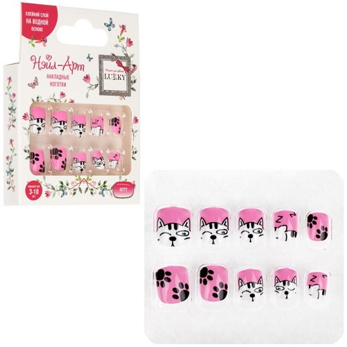 Lukky Нэйл-Арт наб. Kitty 10 наклад.ногтей на клеевой основе,3-10 лет,кор.