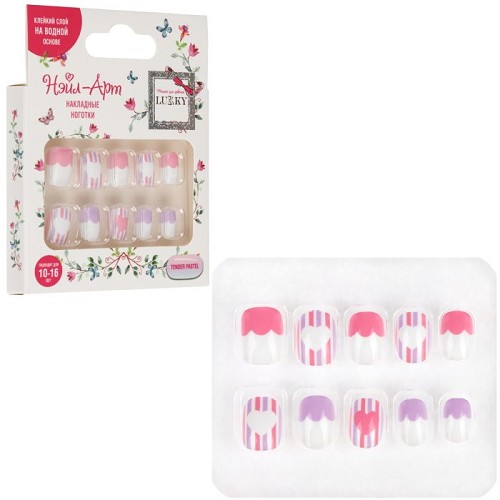 Lukky Нэйл-Арт наб. Tender Pastel 10 наклад.ногтей на клеевой основе,10-16 лет,к