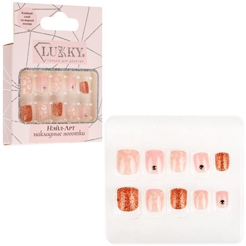 Lukky Нэйл-Арт наб. Rose Gold 10 наклад.ногтей на клеевой основе,10-16 лет,кор.