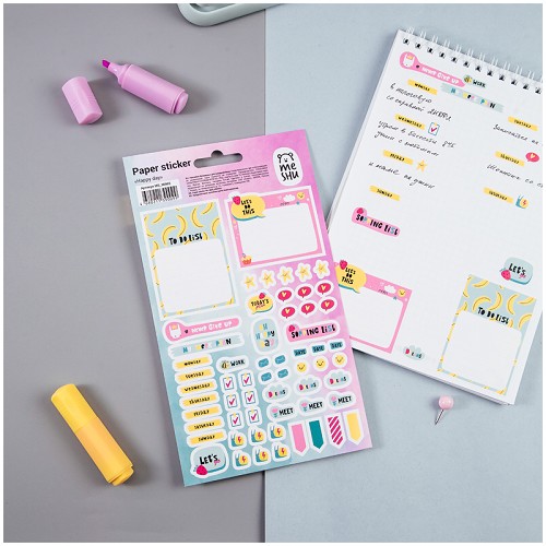 Наклейки бумажные для ежедневников MESHU "Bright life", 12*21см, 55 наклеек, евр