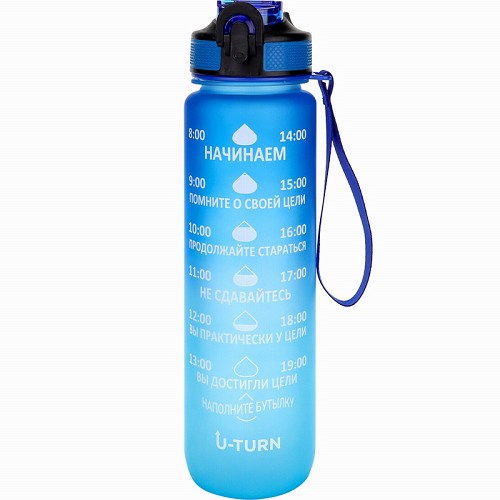 Бутылка д/воды пластик. с крышкой-защёлкой и ремеш U-turn,сине-голубая (1000мл)