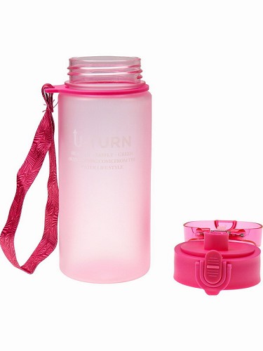 Бутылка для воды пластик.с крышкой-защёлкой и ремешком "Неон",U turn, 400 мл, ро