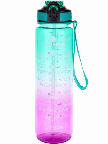 Бутылка д/воды пластиковая с крышкой-защёлкой и ремеш U-turn,зелено-фиол,1000мл