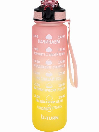Бутылка д/воды пластиковая с крышкой-защёлкой и ремеш U-turn,розово-желтая,1000