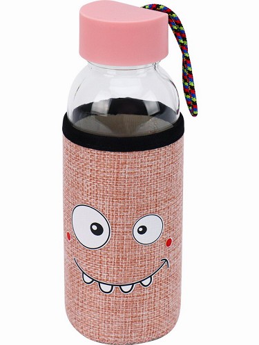 Бутылка д/воды в чехле Смайл, розовая, 300 мл УД-7540