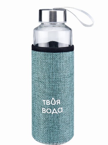 Бутылка д/воды в чехле Твоя вода, 400 мл, бирюзовый УД-7063