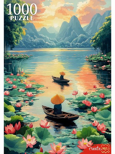 Пазлы (1000эл) Лодки на реке с лотосами П1000-1964