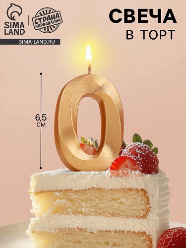 Свеча в торт Грань цифра "0", золотой металлик, 6,5см 5928484