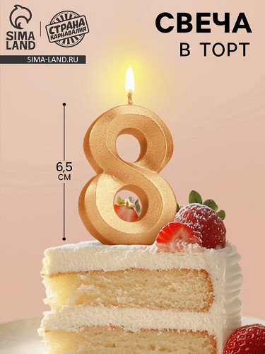 Свеча в торт Грань цифра "8", золотой металлик, 6,5см 5928492