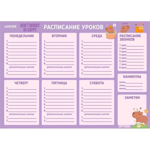 Расписание уроков А3 deVENTE "Capybara" 6020506 лам.,магнитно-маркерное многораз