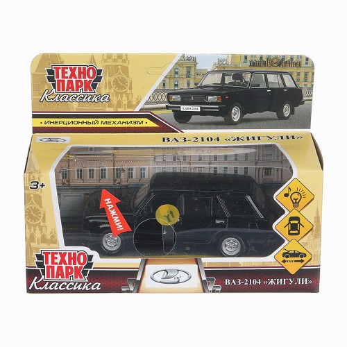 Машина Технопарк металл. ВАЗ-2104 Жигули чёрный (12см) двери, багаж, в/к 2104-12