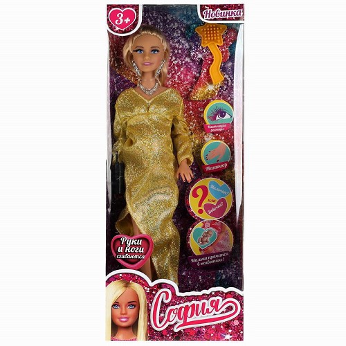 Кукла (29см) София (беременная, руки и ноги сгиб, ресницы, маникюр, акс) в/к 660