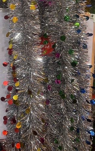 Мишура 2м 6см серебро с цвет.шариками F43691
