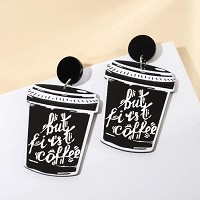 212229 - Серьги акрил Стаканчики кофе (чёрно-белый) 6970472