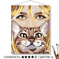 Картина по ном. на холсте (50х40см) с подрам. Девушка с котом (15цв.) КН5040950