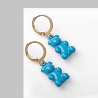 Серьги эмаль Мармеладный мишка на кольце (голубой в золоте) 9757023
