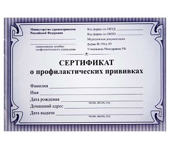 169192 - Сертификат о профилактических прививках КЖ-401б