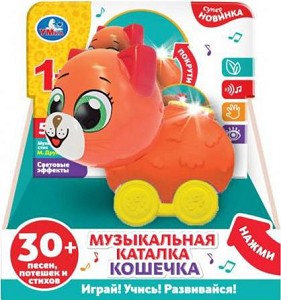 > Каталка развив. Кошечка (30песен,потешек,стихов,свет,трещотка,на/бат) в/к HT547-