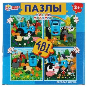 > Пазлы 4-в-1 (9,16,25,36эл) Синий трактор Весёлая ферма 4680107941947