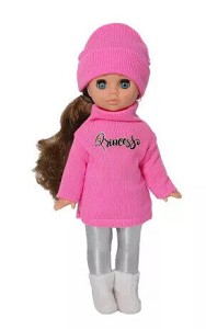 Принцессы – это не только пышные платья и диадемы. Они также заботятся о своем здоровье и одеваются по погоде. В обновленном наряде красавице Эле не будет холодно даже в самые суровые морозы. В комплект одежды входит: удлиненный вязаный свитер с термоаппликацией «Принцесса», серебристые лосины, вязаная шапка, флисовые валенки. Игровые возможности куклы: элементы одежды, которые легко снимаются и надеваются, разнообразят возможности сюжетно-ролевых игр с этой куклой. В процессе игровой деятельности развивается мелкая моторика и творческое воображение ребёнка. Прекрасные прошитые волосы из качественного нейлона, похожие на натуральные, можно завивать, расчёсывать, укладывать в разные причёски, меняя образ куклы. Рост куклы 30,5 см. Кукла Эля не озвучена. Глаза вставные закрывающиеся. Ручки и голова выполнены из эластичного, приятного на ощупь винила, а туловище и ноги из пластмассы. Возраст: от 3 лет.