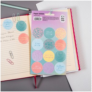 Бумажные наклейки MESHU Positive mind – отличный помощник в креативном оформлении записей в блокнотах и дневниках. Бумажные наклейки подойдут также для украшения канцтоваров, открыток, поделок, телефонов, ноутбуков, предметов интерьера. Яркие современные дизайны от MESHU сделают творческий процесс увлекательным и подарят отличное настроение. Наклейки упакованы в пакет с европодвесом. • Размер листа: 12*21 см; • Количество наклеек: 12.