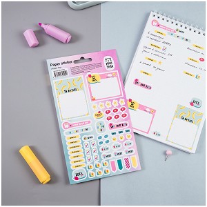 Бумажные наклейки для ежедневников MESHU Happy day – отличный помощник в креативном оформлении записей в блокнотах и дневниках. Наклейки выполнены в милом дизайне и ярких цветах. Лист с наклейками представлен в размере 12*21 см. В упаковке 40-60 наклеек, изготовленных из самоклеящейся бумаги. Бумажные наклейки подойдут также для украшения канцтоваров, открыток, поделок, телефонов, ноутбуков, предметов интерьера. Яркие современные дизайны от MESHU сделают творческий процесс увлекательным и подарят отличное настроение. Наклейки представлены с европодвесом. • Размер листа: 120*210 мм; • Количество наклеек: 40-60