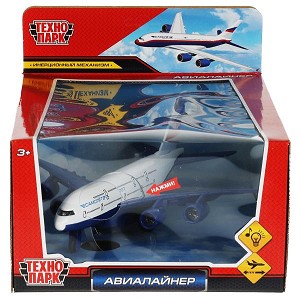 | 208133 - Машина Технопарк металл. Авиалайнер (22см) свет,звук,подвиж.дет,инерц,в/к 1706C1