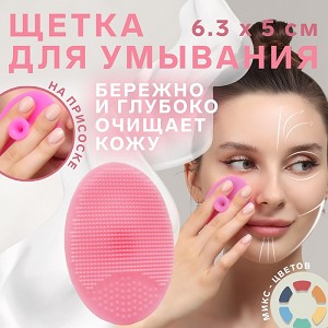 212213 - Щётка д/умывания силикон Овал (6,3*5см) на присоске,микс 5195504