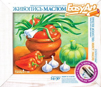 Набор для живописи масляными красками дает возможность вам или вашему ребенку попробовать себя в качестве настоящего художника. С помощью этого набора Вы сможете нарисовать картину маслом на холсте - "Дары природы" В состав набора входит всё необходимое - холст на подрамнике, кисточки разного размера, масляные краски в тюбиках, палитра для смешивания красок и подробная инструкция. Следуя инструкции, нужно прорабатывать картину шаг за шагом, смешивая и добавляя цвет. На холсте уже нанесены контуры будущей картины, что позволит нарисовать картину даже начинающему художнику. Комплектация набора для живописи: холст на подрамнике - 1 шт. кисти - 3 шт. масляные краски - 6 цветов палитра для смешивания красок подробная инструкция Размер холста: 24 х 30 см