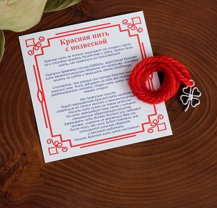 233993 - Браслет-оберег Красная нить шерстяная,на удачу Клевер 30см (серебро) 5037616