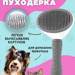 Пуходёрка самоочищающаяся д/собак/кошек Лапусики цв.серый (20*11см) 521-161