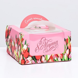 Коробка под бенто-торт с окном От всего сердца тюльпаны (14х14х8см) 9898719