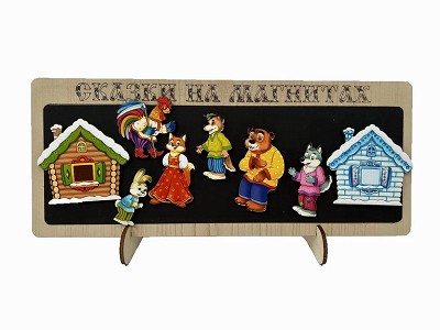 Фигурки сказки "Зайкина избушка" выпилены из фанеры, рисунок бумажный, наклеен сверху. Магнит гибкий виниловый. Цель игрушки: сюжетная игра. Играть можно на домашнем холодильнике, магнитной доске, а можно на планшетке, которая входит в набор. Каждая игра комплектуется подставкой. Возраст: от 3 до 6 лет. Размер 29х12 см.