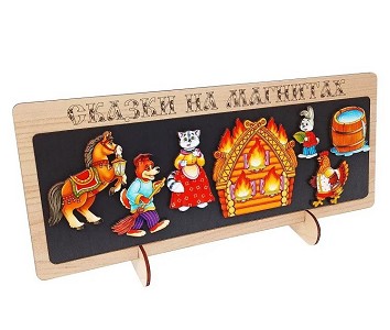 Фигурки сказки "Кошкин дом" выпилены из фанеры, рисунок бумажный, наклеен сверху. Магнит гибкий виниловый. Цель игрушки: сюжетная игра. Играть можно на домашнем холодильнике, магнитной доске, а можно на планшетке, которая входит в набор.