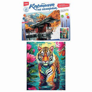 247280 - Картина по номер.на картоне (40*50см) Тигр в тропиках Кпн-359 (Колорит)
